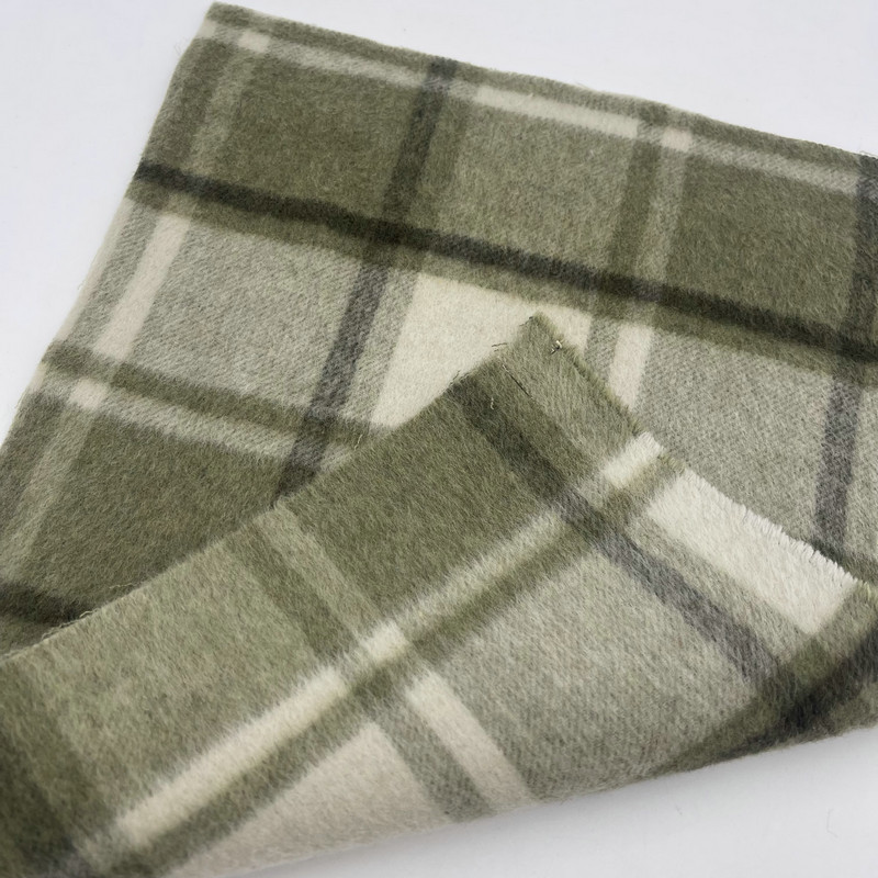 ZZH25001 ürünü olarak tanımlanan bu kumaş, %30 yün ve %70 diğer elyaflardan oluşan kalın dokunmuş bir tekstildir. Birim alan başına kütlesi 900 g/m olan malzeme önemli bir yoğunluk ve ağırlık sergiliyor. Yüzey, özel dokuma teknikleriyle oluşturulan gölge efektli yeşil ekose desenine sahiptir. Bu inşaat yöntemi, ızgara oluşumu içinde katmanlı görsel derinlik üretir. Yün liflerinin karışıma dahil edilmesi kumaşın termal düzenleme özelliklerini etkiler. Bu teknik özellikler, belirgin doku ve önemli varlığın gerekli olduğu yapılandırılmış giysiler için uygun, ağır bir dokuma kumaşla sonuçlanır.