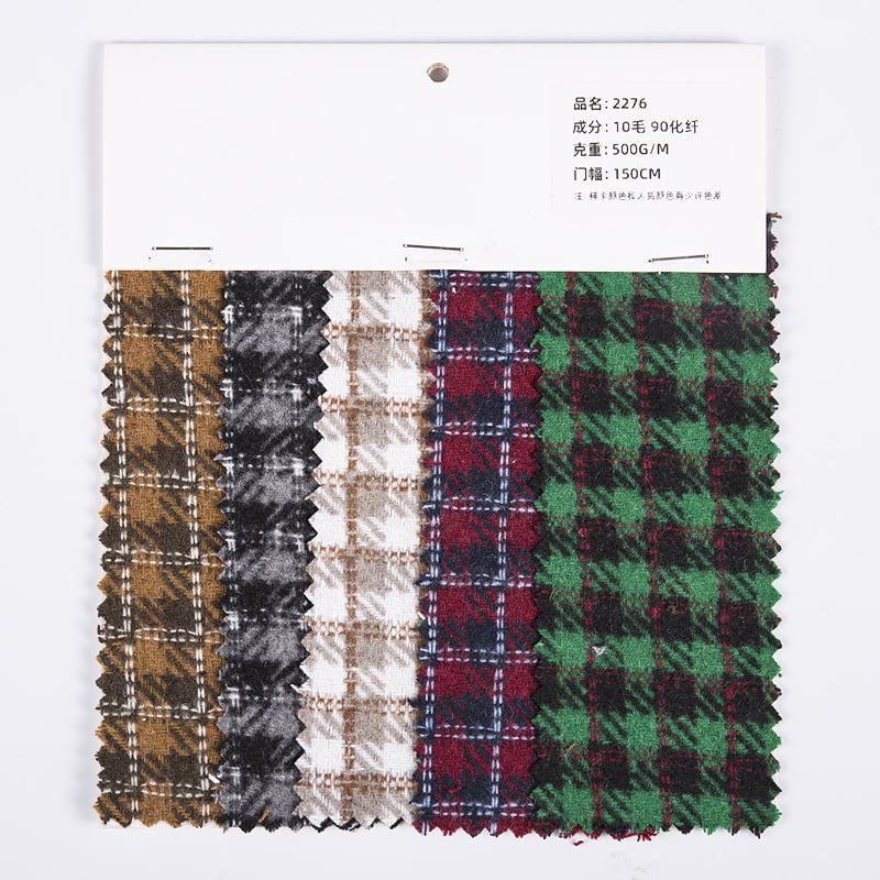 Çin Üretici Kontrol Ekose Fırça Jakarlı Yün Boyalı Tüvit Kumaş 2276, yünün doğal sıcaklığını kimyasal elyafın aşınmaya dayanıklı ve kırışmaya dayanıklı özellikleriyle akıllıca birleştiren,% 10 yün ve% 90 kimyasal elyaftan oluşan benzersiz bir harmanlama işlemi kullanır. Yünün yumuşaklığını ve rahatlığını artırırken kumaşın pratikliğini ve dayanıklılığını da büyük ölçüde artırır. Eşsiz kareli tasarım, zarif fırça jakar teknolojisiyle sunuluyor ve her ayrıntı özenle işlenerek genel kumaşın üç boyutlu ve canlı bir görsel efekt sunması sağlanıyor. Renk açısından, parlak, kalıcı ve eşit dağılmış renkler sağlamak için ileri boyama teknolojisini kullanıyoruz, bu kumaşı görsel olarak daha renkli ve çeşitli moda kombinasyonlarını kontrol etmesi kolay hale getiriyoruz. Tüvit dokusu bu kumaşa benzersiz bir retro çekicilik ve moda atmosferi kazandırır. İster üst düzey takım elbiseler, zarif paltolar, ister enfes takım elbiselerin yapımında kullanılsın, kullanıcının olağanüstü zevkini ve kişiliğini kolaylıkla gösterebilir. Aynı zamanda, iyi nefes alabilirlik ve orta düzeyde esneklik, rahat bir giyim deneyimi sağlayarak modanın tadını çıkarırken fiziksel ve zihinsel rahatlama ve keyif hissetmenize olanak tanır.