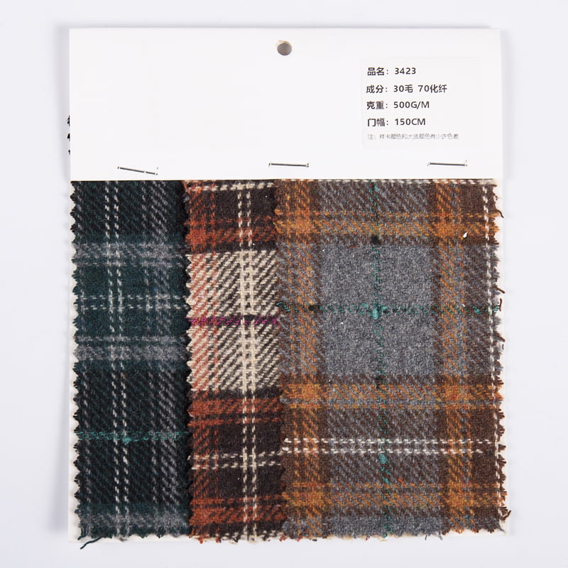 Kışın Giyim İçin Klasik Ekose Yün Tüvit Kumaş 3423, klasik ekose desen tasarımını benimser. Bu unsurun moda endüstrisinde uzun bir geçmişi vardır ve her zaman benzersiz cazibesini ve statüsünü korumuştur. İnce dokuma teknolojisi sayesinde, ekose deseni kumaş üzerinde canlı bir şekilde sunuluyor; bu, yalnızca geleneksel kıyafetlerin retro çekiciliğini korumakla kalmıyor, aynı zamanda modern tasarımın sadeliğini ve modasını da birleştirerek kumaşı görsel olarak son derece tanınabilir ve çekici kılıyor. Malzeme açısından 3423 kumaş ana malzeme olarak %30 yüksek kaliteli yün seçmektedir. Doğal bir ısı yalıtım malzemesi olarak yün, iyi higroskopisiteye ve nefes alabilirliğe sahiptir, bu da vücut ısısını etkili bir şekilde kilitleyebilir ve kullanıcıya kalıcı sıcaklık ve rahatlık sağlayabilir. Aynı zamanda yünün yumuşak dokunuşu, kumaşın cilt dostu olma özelliğini ve giyim deneyimini de büyük ölçüde artırıyor. Kumaşın pratikliğini ve dayanıklılığını daha da arttırmak amacıyla 3423 kumaşına %70 oranında yüksek kaliteli kimyasal elyaf bileşenler eklenmiştir. Kimyasal elyaf malzemeleri, kumaşın uzun süreli kullanım sırasında düz ve canlı kalmasını ve deformasyona veya aşınmaya eğilimli olmamasını sağlayan mükemmel kırışıklık direnci ve aşınma direnciyle bilinir. Ayrıca kimyasal elyaf malzemelerin kolay bakım özellikleri de kumaşın bakımını kolaylaştırır ve çeşitli yıkama yöntemlerine uygun olmasını sağlar, bu da giysilerin kullanım ömrünü büyük ölçüde uzatır.