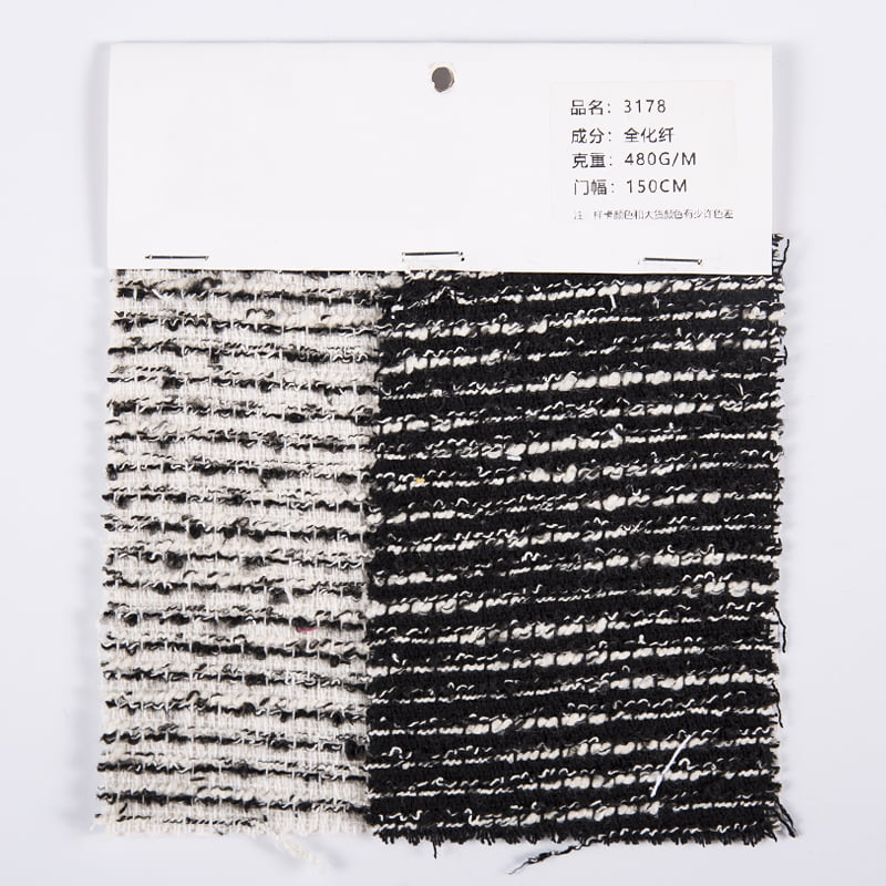 Kabartmalı Yatay Çizgili Polyester Tüvit Kumaş 3178, kumaşın dayanıklılığını ve mükemmel performansını sağlayan %100 kimyasal elyaftan, özellikle yüksek kaliteli polyester elyaftan yapılmıştır. Polyester, mükemmel kırışma direnci, aşınma direnci ve iyi esnekliği ile bilinir; bu, 3178 kumaşının zarif bir görünümü korurken günlük kullanımdaki çeşitli zorluklarla başa çıkmasını kolaylaştırır. Sık sık yıkansa veya uzun süre giyilse de kumaş orijinal şeklini ve dokusunu koruyabilir ve deforme olması veya solması kolay değildir. Kabartma işlemi bu kumaşın bir başka öne çıkan özelliğidir. Gelişmiş kabartma teknolojisi sayesinde kumaşın yüzeyinde hassas bir yatay şerit deseni oluşturduk. Bu şeritler sadece görsel bir katmanlama hissi vermekle kalmıyor, aynı zamanda kumaşı daha üç boyutlu ve dokunuş açısından zengin hale getiriyor. Kabartma işlemi sadece kumaşın güzelliğini arttırmakla kalmaz, aynı zamanda dayanıklılığını ve kırışma direncini de arttırır, böylece onu her giydiğinizde yeni bir ürünün konforunu ve dokusunu hissedebilirsiniz. Tüvit tasarımı 3178 kumaşa benzersiz bir sağlamlık ve zarafet tarzı kazandırır. Bu tasarım kumaşı görsel olarak daha dolgun ve dokulu hale getirmenin yanı sıra mükemmel sıcaklık tutma performansı da sağlar. İster soğuk kış ister serin ilkbahar ve sonbahar mevsimi olsun, bu kumaş size sıcaklık ve rahatlık getirebilir.