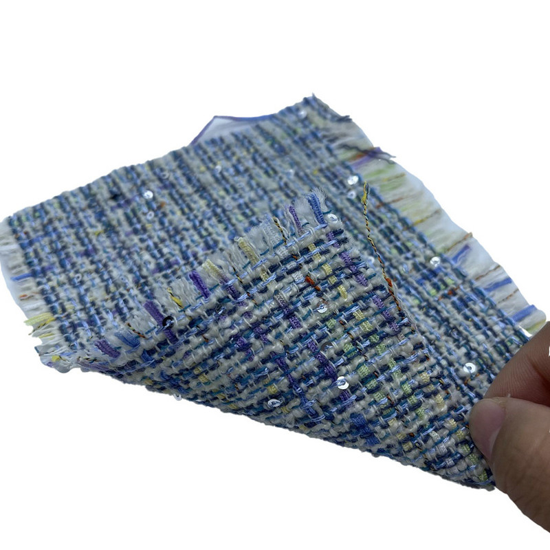 ZZH24018 ürünü olarak tanımlanan bu kumaş, %20 yün ve %80 polyesterden oluşan bir tüvit kumaştır. Birim alan başına kütlesi 560g/m olan malzeme orta ağırlıkta bir yapı sunar. Kumaş, tüvit yapısının içine sabitlenmiş metalik payetler içeriyor ve yüzey boyunca aralıklı ışık yansıması yaratıyor. Yün ve polyester karışımı, doğal elyaf özellikleri ile yapısal tutarlılık arasında bir denge sağlar. Bu kombinasyon, yüzey dokusu çeşitliliğine ve boyutsal stabiliteye sahip bir malzeme ile sonuçlanır. Bu özellikler, bu tüvit kumaşı, hem görsel ilginin hem de pratik performansın göz önünde bulundurulduğu kadın elbise kabanları için uygulanabilir kılar.